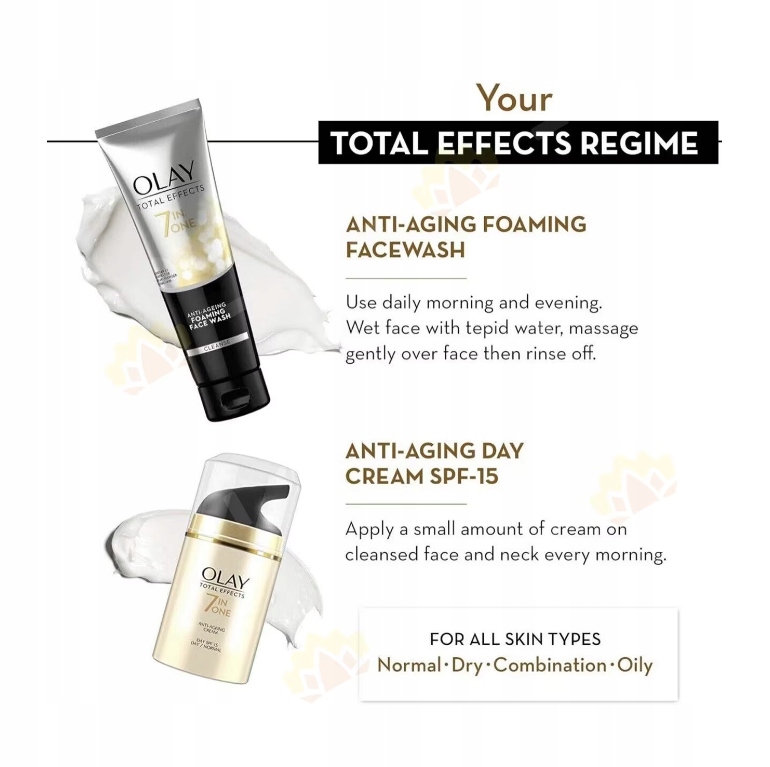 ✅ Zestaw zawiera krem Olay Total Effects SPF15 50ml i środek do mycia twarzy 100ml.